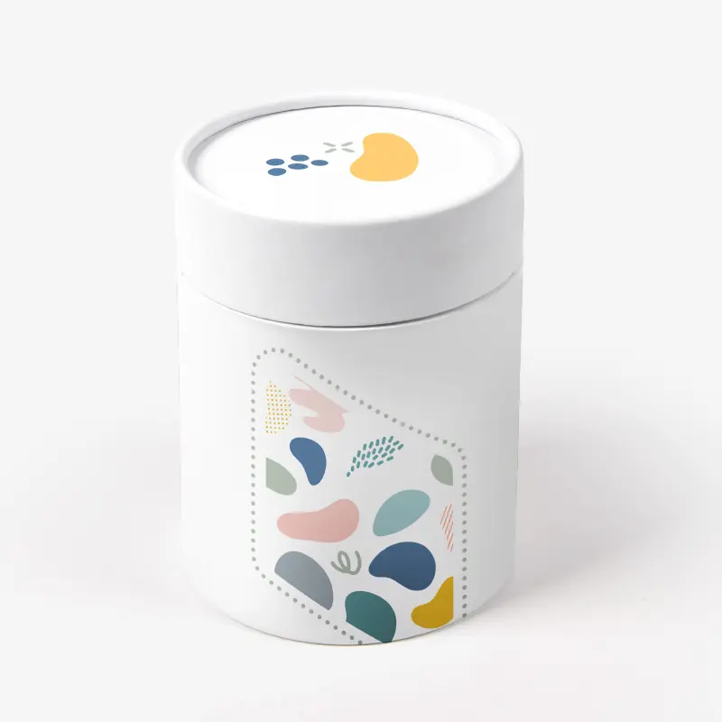 Cylindrical tray and lid style rigid box with shoulder neck.