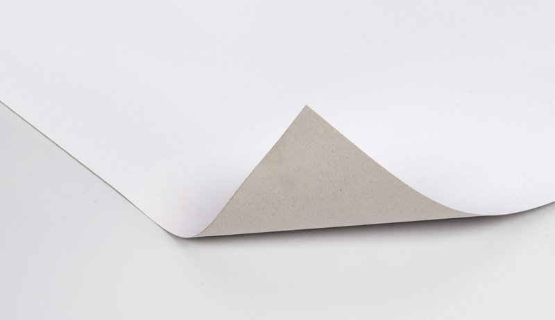 Duplex paperboard made from 90% recycled paper pulp with a white surface for high-quality printing.